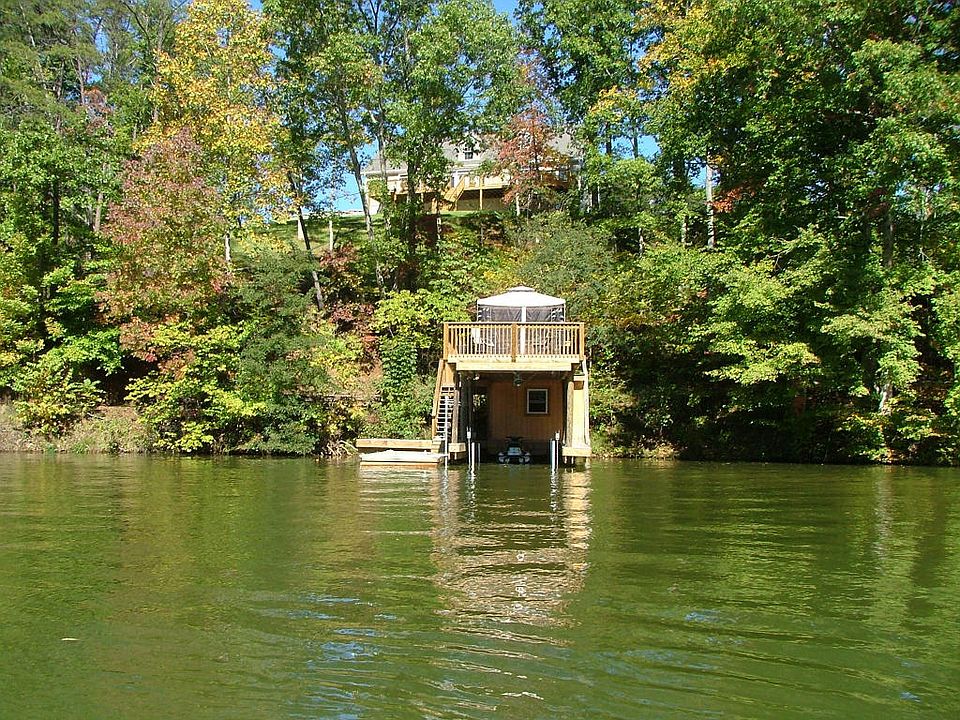 Deck overlooking water is 58 x 12. House is on 12'' concrete foundation. Hot tub is negotiable. Large over-sized garage can accommodate more than 2 vehicles. Property is secluded & on quiet cove. Gravel part of driveway to water is Deeded Right of Way.American Home Shield Warranty to be provided. 2nd Office up adjoining Master Suite.