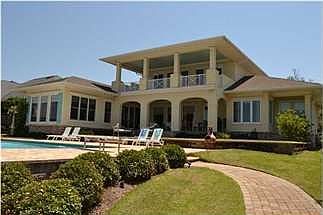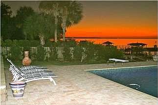 Absolutely gorgeous, inviting and elegant, this 5440 sq ft Coastal home is designed to maximize the benefits of a waterfront lifestyle and embodies all that is best about luxury living. The open flowing floor plan seamlessly integrates indoor and outdoor living space that includes an expansive veranda with fireplace and outdoor kitchen, infinity pool, and tiered back yard, easily accessed from the relaxing sun room, great room, master bedroom and dining areas. The stage is set with the winding drive through live oak trees and professionally landscaped lawn. Built for his own home by a local custom builder, no detail is omitted. This two story home, with shades of soft Florida aqua accenting the wood shutters and tongue and groove ceiling on the full length front porch. A matching second story balcony that stretches the length of home. Antique pine 8? shuttered interior doors that can be open or closed, separate the foyer from the living area, as well as the dining and sunroom. A lovely sitting room with fireplace, is light and bright and the formal dining room across the hall anchor the front of the home. The living area, family room, open informal dining room and incredible chef?s kitchen are brick floored, matching both veranda areas. The expansive kitchen cabinets are custom, stainless appliances are Kenmore Elite and the dramatic focal point is the 91/2? x 4? Cypress Island with 3 cm white granite. Adjacent to the family kitchen is a second service kitchen with salvaged white porcelain sink, refrigerator, microwave, even more custom cabinets and laundry area. The ?in-law? suite, located on the main floor, is private and completely finished for comfortable living. The free standing porcelain tub /shower combo, large closets and additional storage spaces as well as separate exterior entrance make this a usable living space for multiple purposes. The master bedroom is on the main living level as well. Great space,a sitting area to see the incredible Bay views from the oversized windows and a sizable, tasteful, very elegant master bath features Marble floors and countertops, sconce lighting, a huge walk in custom closet and exterior entrance. The family dining/sitting area is open to kitchen and features a fireplace, media hook-ups, large casual dining table, serves as the ?hang out? area for family and guests. The sun room/breakfast room has a sense of tranquility and peace. The living room is comfortable, spacious, warm and beautifully finished. An antique fireplace mantle, built in cabinetry on two sides, the brick floor, and wall of windows overlooking the bay is quite relaxing. 10` ceilings (throughout the house), triple crown molding and 8?,10? and 12? baseboards are characteristic of the finishes in every room. Upstairs, the 4 bedrooms are spacious with great custom closet space, each bedroom has its own custom tile or marble bath and two bedrooms access the front balcony. With the 23` elevation, 110` of waterfront and .75 acre lot, recreation is mandatory and easy to enjoy with the 18?x40? saltwater pool w/ multi-color lighting system, large terraced paver pool area, outdoor shower, hot tub, covered boathouse w/ boat lift, 2 Jet Ski lifts, one kayak lift, and fish cleaning table with sink. This fabulous Coastal home incorporates sustainable design features ensuring maintenance free living, efficient energy usage and lasting value.