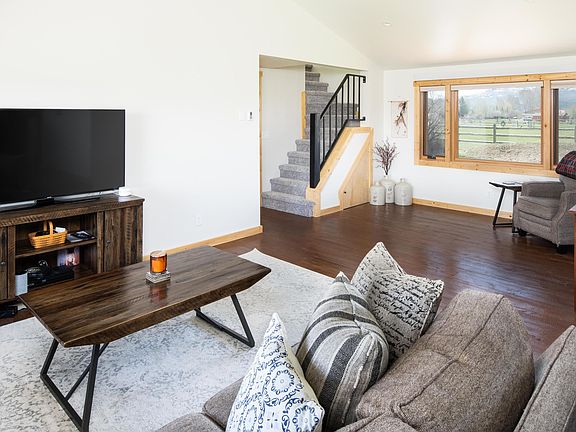 Located on 2.5 pastoral acres with sweeping Teton views, this beautifully remodeled home is a perfect opportunity for those looking for limited CC&R's, land, and close-to-town living. This home boasts a very functional layout complete with four bedrooms, three remodeled baths, large bonus room, laundry room, mudroom, and pantry. Views are plentiful from the home including the full Teton Range including the Grand Teton and Mount Glory, Munger Mountain, the Wyoming Range, and more.The home's makeover was extensive including new siding, new formal entryway, a more open floorplan, an added gas fireplace, new carpet, all new bathrooms, cove heating, new decks, new landscaping/sod, sprinkler system, new water softener system, asphalt driveway, and more. 2019-06-13