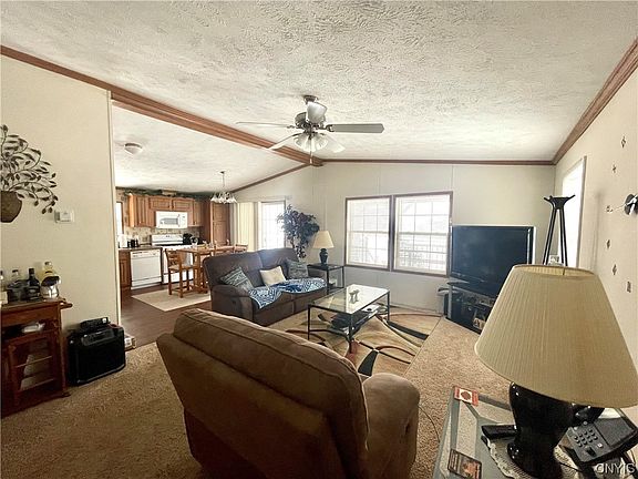 Welcome home to this lovely 3 bed 2 bath peaceful country ranch, located on nearly 3 well kept acres. In side you will find an eat in kitchen with a new refrigerator and stove. A sliding glass door opens up to a spacious covered deck overlooking the front yard. An open floor plan connects the kitchen and living room that extends to cathedral ceilings. Primary bed has an attached bath and walk in closet. Connecting the main living space and garage is a large family room/ game room. The sliding door opens to a porch and grand back yard. There are many opportunities to make this space your own. The 24 x 40 attached garage has 2 electric overhead doors on each side, a work bench and has space for 4 cars. An added shed outside makes plenty of space for all your outdoor, car, and/or sporting needs.
