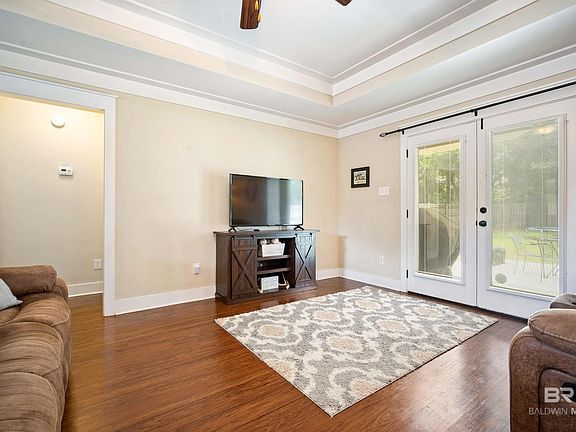Welcome home! From the moment you enter, you will fall in love with the layout of this home. The kitchen, which is equipped with stainless steel appliances and granite counter tops, overlooks the light-filled living room. In addition to the dining area, you also have breakfast bar seating. This home features a great split bedroom floor plan. The primary bedroom is spacious and has a very well appointed bathroom with double vanities, a soaking tub, separate shower and a large walk-in closet. The other two bedrooms are great sizes, as well. Spend your time enjoying the privacy of the fenced backyard that has a covered area, great for grilling, and a large patio area. Close to all of the amenities west Mobile has to offer. The HOA is only $180 annually. This home does qualify for USDA (no down payment) financing for qualified buyers. All measurements were taken from tax records, buyer to verify. Buyer to verify all information during due diligence.