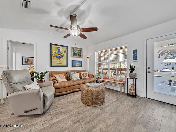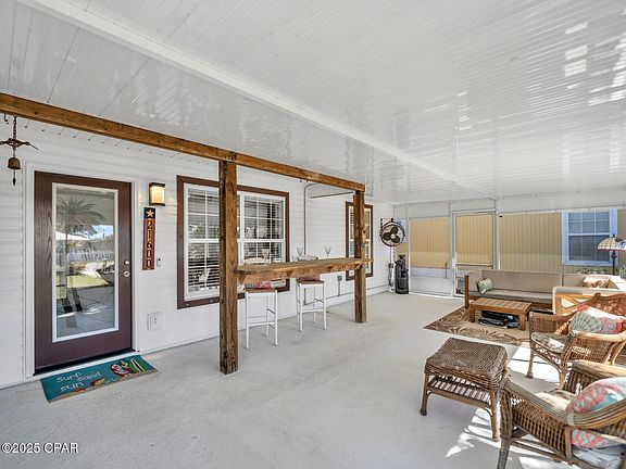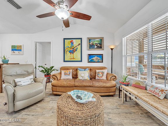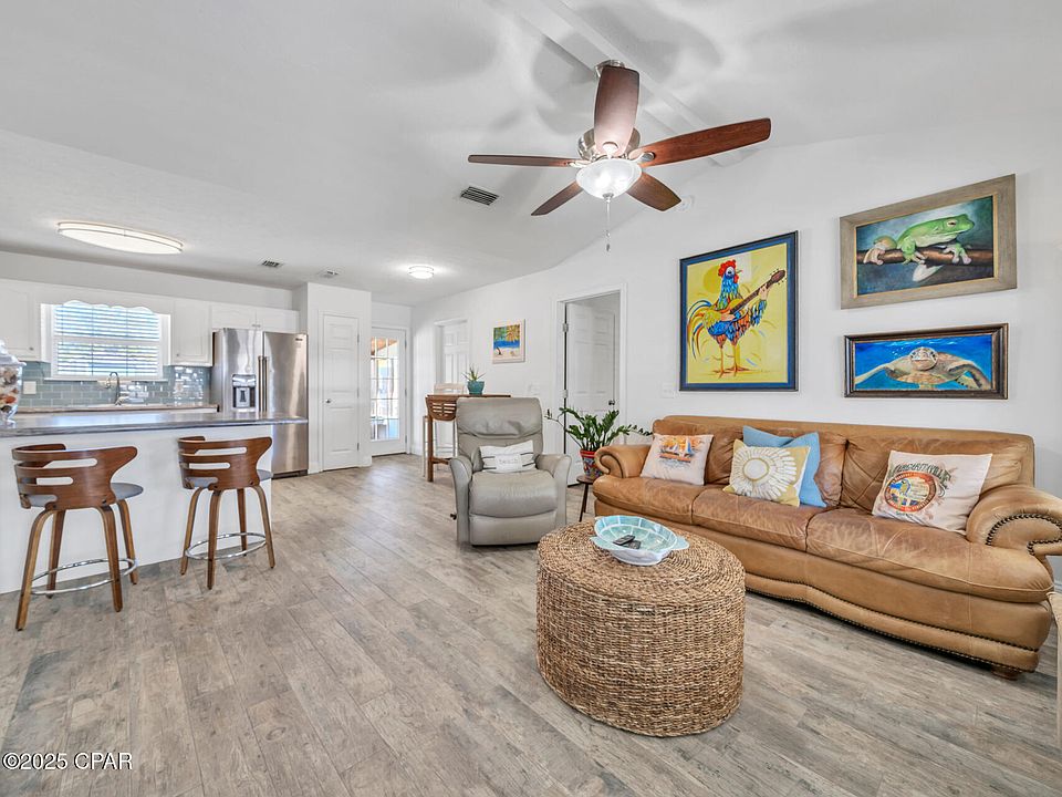 After a Ton of Upgrades!! New Stainless Steel Appliances, Tile Floors! Tiled Shower! Both Bathrooms Upgraded!! Spa Deck Rebuilt! This 3 Bedroom 2 Bath Home is built for the Beach Life! Located in the Riviera Beach Neighborhood on the desirable West End of PCB! Huge 15 X 30 Screen Front Porch, a Rear 10 X 12 screen porch and even a 15ft. Swim Spa! A Wired 12 X 24 Workshop! Outdoor Shower! Natural Gas Stove, Water Heater, AC Heat and Dryer. Electric Fireplace in the Living Room. Breakfast Bar. Separate Well and Irrigation System! NO HOA!!! Short Term Rentals are allowed. Covers for the Front Porch Screens so you can enjoy it year-round! Roof replaced 2019, AC and Water Heater are just a few years old! You will Love this Golf Cart Friendly Neighborhood! Close to Beach Access! Sold Mostly Furnished with an Excluded List Under Documents Tab. If details and dimensions are important to you, please verify.