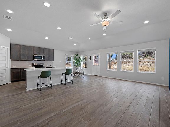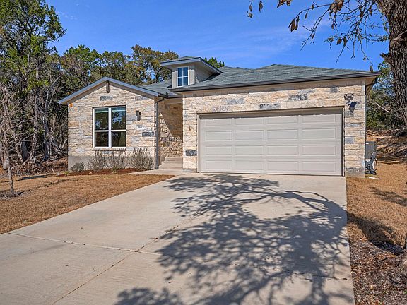 BEST PRICED HOME IN THE NEIGHBORHOOD HOME IS ONLY 2-YEARS OLD Stunning Corner Lot Home with Stone Front in Lago Vista! This beautifully designed home boasts elegant wood-look tile flooring throughout the main living areas and bedrooms. Enjoy the spacious rear covered patio, perfect for relaxing or entertaining, and blinds installed throughout for added convenience and privacy. The modern kitchen is a chef’s dream, featuring sleek grey cabinets with 42-inch upper cabinets, stunning Blanco Maple Quartz countertops, with an oversized center island. A corner pantry and stainless steel appliances complete the space, offering both style and functionality. The primary suite is a true retreat with a generous walk-in closet, an additional door for added privacy, a separate water closet, and a walk-in shower for a spa-like experience. Exceptional Community Amenities: As a resident, you’ll have access to a host of remarkable community features, including 9 scenic parks, a hiking trail, and a disc golf course—providing plenty of opportunities to stay active and enjoy the natural beauty of the area. Water enthusiasts will love the open boat ramps leading to the stunning waters of Lake Travis, as well as the fishing well and convenient kayak storage racks. For fitness-minded individuals, two well-equipped community fitness centers ensure you have everything you need to stay fit and healthy, all right at your doorstep. This home combines quality, functionality, and style, making it a must-see!