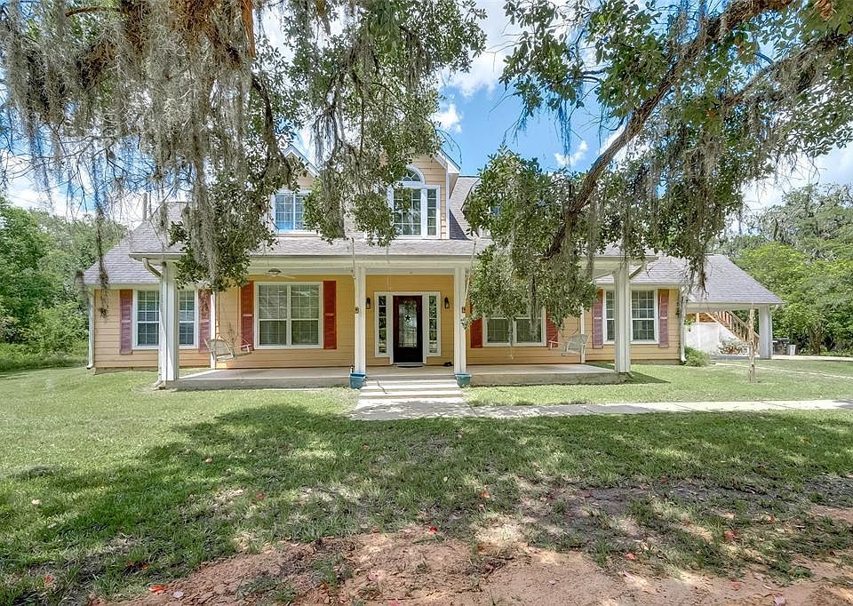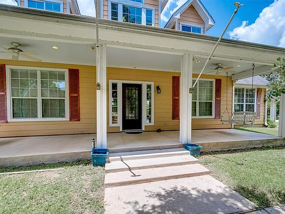 Gorgeous Views & Trees all situated on 2 acres zoned to Needville ISD. 4 bed/3.5 bath/3 car garage (w/restroom) & unfinished garage apt, Formal dining has laminate wood floors, spacious living room w/a wall of floor to ceiling windows & stunning views of the landscaped backyard, Lake, & deer that roam freely! The fireplace provides a cozy & comfortable addition to the living room while the crown moulding adds a sophisticated style. The kitchen area has 5 burner gas cooktop, island w/plenty of cabinet storage, double ovens, prep sink in addition to primary sink, built in microwave, dishwasher, granite countertops w/matching granite backsplash & tile floors. Off the kitchen is the screened in Sunroom allowing you to dine outdoors or just relax & enjoy the sounds of birds chirping. The master is downstairs & has its own outdoor patio. Additional bedrooms are upstairs w/their own partially closed in patio (has A/C) & balcony w/Endless views of the Lake! Home DID NOT flood!