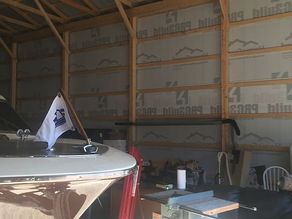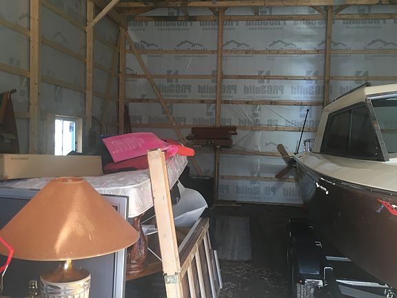 5 acres with 36x48 pole building, 16’ side walls, 12’ overhead door, 2’ overhang and crushed concrete base