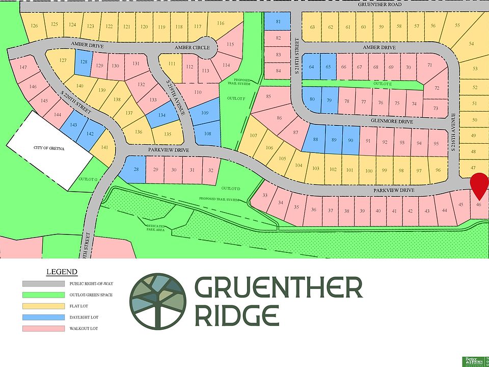 Build your dream home! Gruenther Ridge development is off the beaten path, west of Gretna. This walkout lot is a Non-Builder attached lot that backs up to green space. Don't miss your opportunity to enjoy the space this lot and development has to offer.