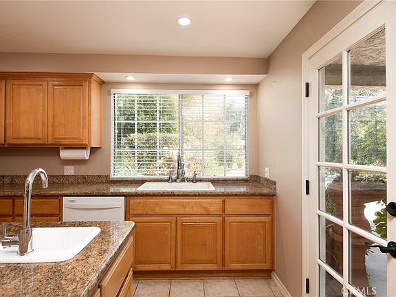 Spacious well-maintained home nestled in “The Trails” Equestrian Estates in a private cul-de-sac on a huge lot over 18,000 Square Feet. Gracious double door formal entry surrounded by trees and lush foliage framed by brick pillars leads into an expansive Living Room with vaulted ceiling, recessed lighting and handsome fireplace, plus a lovely dining area. Cook's eat in kitchen with stone counter tops, warm honey colored wood cabinets, center island with prep sink, double oven, microwave, & double sink overlooks beautiful park-like grounds. Plenty of room for horse stalls and for entertaining family & friends. French doors in open Family Room leads out to the enchanting garden with meandering paths through gorgeous foliage, trees and succulents, complete with a picturesque wishing well. Relax in the covered patio and leave the world behind. The generous Primary Bedroom boasts an ensuite bathroom, large closet, additional closet, and French doors opening to the luscious grounds. Rich wood floors and recessed lighting in Living Room, Dining, Family Room, Primary Bedroom, and 2 Additional Bedrooms. 3 Car Garage with laundry area has direct access into home. Amenities include a solar energy system, and lighted Driveway with Basketball hoop that doubles as a sports court. Hurry, this great property won't last!