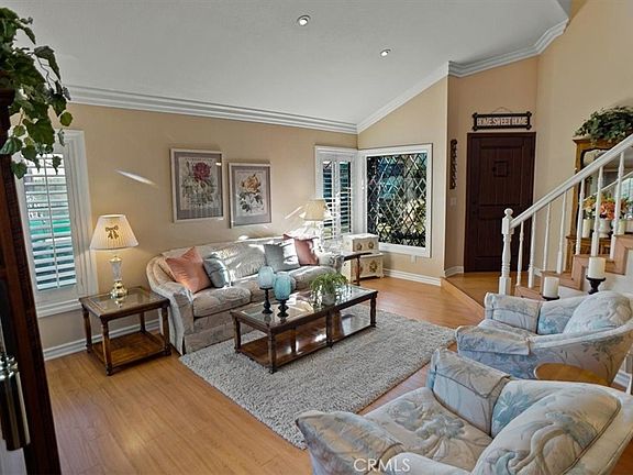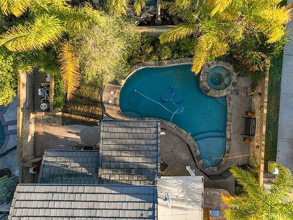 Let's talk about Curb Appeal, Curb Appeal, Curb Appeal! Corner lot location with loads of parking. Enter this beautiful, turn key, well maintained 4 bedroom 3 bath Brock Canyon home with a fully fenced, pebble tec "Private Pool & Spa" area with waterfalls. Enter your backyard oasis thru 2 areas from the home offering french doors leading to the yard with a solid patio cover, ceiling fan and built in Bar B Que area with refigerator & granite counters, pebble tek pool and spa with waterfalls and a lovely grassy area for play, solid block wall fencing as well. Home offers re-piped copper plumbing, zoned control central heat & air, newer windows (some are custom leaded glass, gorgeous) and plantation shutters. Enter the home to soaring 2 story ceilings in formal step down living and dining area. Remodeled bathrooms with beautiful newer vanities with ceramic tile, custom tile showers, newer neutral carpet in bedrooms, recessed lighting through the entire home, built in reading lights in primary bedroom. Kitchen offers granite counters, ceramic tile flooring, stainless steel appliances and refrigerator (included). Eat in kitchen which opens to family room with cozy fireplace. Formal dining & living room area with french doors which opens to backyard. Laundry area with Washer & Dryer included. Too much to list. A must see! Home is light, open and located near shopping, transportation, award winning schools, restaurants and hospital. NO MELLO ROOS....low HOA (includes community park).