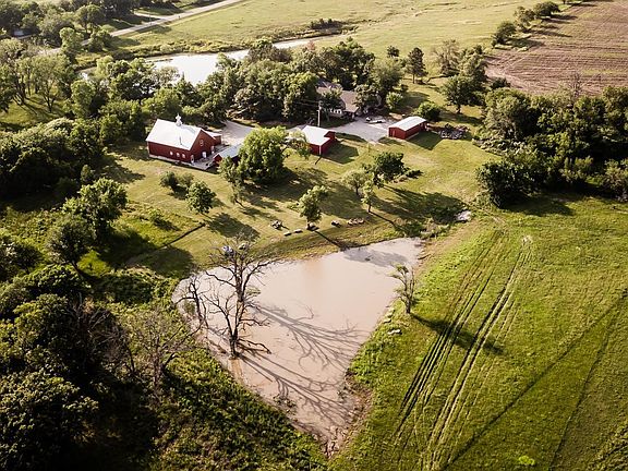 This 26+/- homestead is located just outside of Onaga, KS. The original limestone house was built in 1880, with a major addition and updated in 2017. Pulling into the driveway it is hard not to admire the ponds, mature shade trees and beautiful landscaping. The inside of the house boasts much of the original craftsmanship, but perfectly mixed with modern upgrades. The main house has 5 bedrooms, and 4 full bathrooms with over 4,200 feet of finished square footage. A new outdoor covered patio has also been added and is perfect for grilling, relaxing or entertaining. The original smokehouse has also been converted into living space and is a must see! The property also boasts many updated outbuildings. The large 34x50 barn with 24x38 lean-to has over 900 feet of finished square footage. The finished area has a large studio apartment/entertainment room with a full kitchen and one full bathroom. There's also a 1 bedroom, 1 full bathroom ranchette that also has a full kitchen and laundry. A 18x40 metal carport sits near the house and has a concrete floor along with a spray foam insulated storage room. There is also a 24x36 pole shed that is open on one side. The furnishings and appliances in the ranchette and finished living space in the barn are included with the property sale. These structures provide opportunities for additional rental income, or even a potential bed and breakfast business. The entire property is all electric and on rural water.