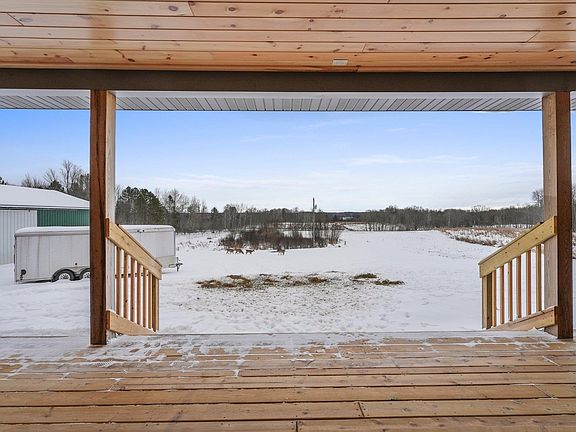 A MUST-SEE property! Newly renovated/built quality home with two large outbuildings, including a 32x60 pole barn. This well-maintained/groomed 40 acres on the N Branch Pine River is a hunter and fisher's dream! Step into the charm and comfort of this three-bedroom, two-bath home. The grand open floor plan has loads of natural light and beautiful countryside views. The spacious kitchen offers modern appliances and an abundance of (soft-close) cabinets. The primary bedroom has covered porch access; it has ample space for a king-sized bed and additional furniture. His and her closets and an en-suite bathroom that boasts a jetted soaking tub and separate shower. Two additional good-sized bedrooms with large closets. The basement is ready to be finished for additional living space (bath ready). There are SO many thoughtful upgrades throughout! Here are just a few to mention: New 126' deep well. Equipped with an oversized water heater, softener, and pressure tank. The basement was dug out for higher ceiling height when finished. The barn has a car hoist, water, and electric. There is a bridge over the river, food plots, and trails throughout the property. The property was surveyed, and certified stakes were placed at all corners and river edges. The home and barn are set up for a wood boiler system. (the heat exchanger is in the furnace now) insulated pex to site. Piped soft water to the outside spigot for car washing. I'll say it again: Hunters and fishers dream; the property offers so much wildlife! This home provides a beautiful indoor living space and the joy of outdoor leisure. Zoned Qualified Agricultural.