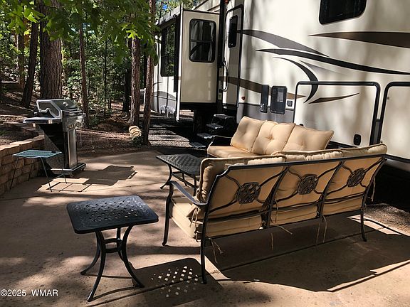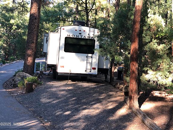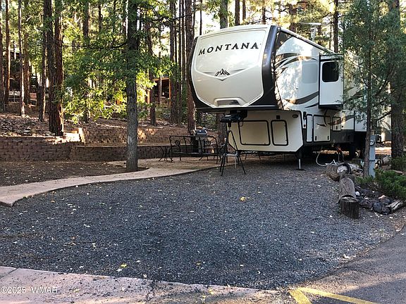 Rare find in White Mountain Vacation village with 2 lots grandfathered-in for 1 HOA! One lot is .08 that is set up for pull-in and pull-off convenience with all hook ups for an RV or a park model if you choose. Walk up the beautifully terraced lot to a nice firepit, as well as a custom-built gazebo you can relax and enjoy on the other lot of .07. Plenty of space to enjoy all what the beautiful mountains have to offer with fresh pine air, trees, and the beautiful stars at night. 8x10 shed is included with electricity for all your tools. Located within a vibrant community with live music events, card games, bocce ball, darts, pool tables, just too many activities to list! You'll have access to the clubhouse, laundry facilities, and well-maintained roads. The HOA covers water, sewer, trash, street snow plowing, making for easy, stress-free ownership. RV is not included but can be sold on a separate bill of sale while the 5th wheel is still on the lot. Priced to Sell!