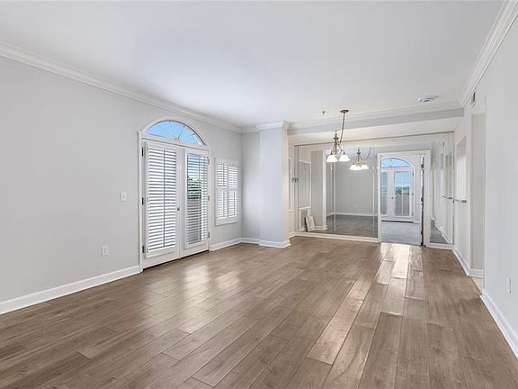 Crown moldingPrivate balcony accessStainless steel appliancesAmple cabinet spaceGenerous closets