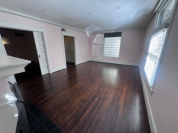 Hardwood floors throughout. Air conditioning. Wood-burning fireplace. On-street parking only. UNFURNISHED.