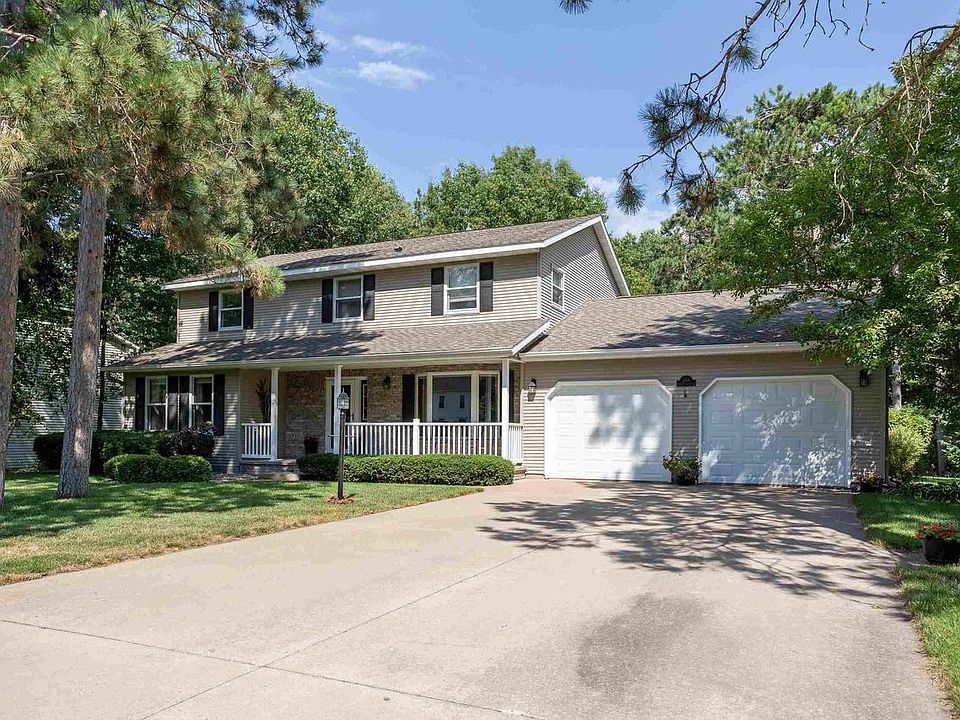Welcome to this well maintained two story colonial 4 bed, 2 full bath, 2 half bath home in the Shadowhaven neighborhood in Plover. 3192 finished sq ft on 3 floors w/ baths on every floor. On a large lot, the yard is fully landscaped and incl underground sprinklers. Wooded backyard provides added privacy. Kitchen has been remodeled and includes custom cabinetry w/ ample storage and prep space. The owner's suite is large w/ 2 closets incl a walk-in, & has an ensuite bath completely remodeled in 2019 w/ a walk-in shower, dual vanities, and a heated floor. Basement is finished w/ a large open rec room plus a half bath & extra flex room. Unfinished area includes a large storage area w/ shelving, large workbench, & fridge. 2 1/2 car garage w/ lg storage area. Conveniently located near amenities incl the elementary school, library, grocery store and Green Circle walking/bike path. Recent updates: owner's suite bath complete remodel (2019), furnace and central A/C (2018), window jambs and storms (2019), kids full bath complete remodel (2018), new LVP flooring in family room and dining room.