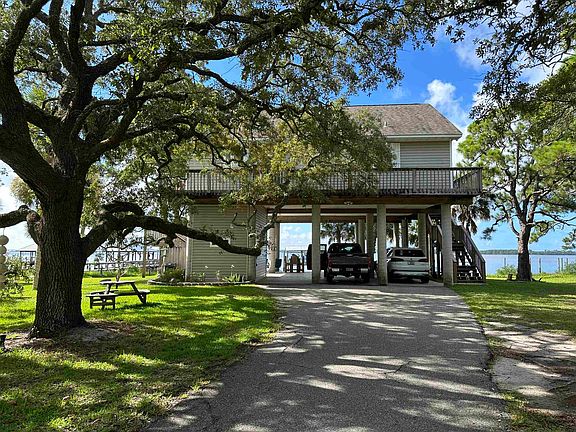 Welcome to your very own Bay Front Sanctuary with awesome views located just minutes from great restaurants, marinas, boat ramps and beaches! Features include a 3 bedroom, 2 bath home with large lot, 2.17 acres, that extends to Surf Rd., detached 29x23 shop/garage with water and upstairs storage, metal 14x40 RV shelter complete with 30 amp electrical service, asphalt driveway, deep water dock, floating dock, electric boat lift, cleaning station w/outdoor shower, Beach Butler and Hurricane Shudders. Drive is gated. Fishing fans will enjoy the ease of boating to the Gulf or Ochlocknee/Sopchoppy Rivers. House is situated on 16 foot pilings and has a convenient workshop/storage on ground floor as well as tons of entertaining space and outdoor shower with hot water. You will find the screen porch overlooks the Bay and is great for relaxing or entertaining while enjoying the breezes. Interior lives nicely with the open floor plan, cathedral ceilings, wood burning fireplace and a smaller bedroom located upstairs, as well as lots of storage space. The kitchen was very well planned and features stainless steel appliances, over sized gas cooktop, island with lots of storage space and counter space. The bench style dining area adds a bit of Southern Charm. Property is serviced with public sewer and water, gas and tankless water heater. Property is 4,402 square feet under roof and 1,454 heated and cooled. There is an older private boat ramp with access to the Bay. And, best of all, the home comes turn key with all furnishings.