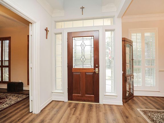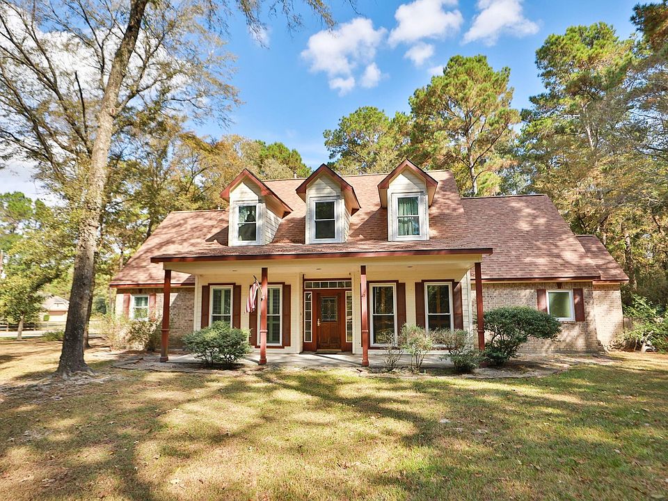 Country gem situated on a wooded 2.94 acre (just under 3 acres!) corner lot, in section of highly sought after rural community. Current owner has thoughtfully maintained this home, with updates over recent years as follows: propane tank (leased) 2025; new A/C & furnace, 2023; new windows (vinyl) & doors, & bedroom shutters, 2022; new floors and roof, 2021. Study/home office w/ closet, is adjacent to full secondary bedroom down, thus is a flexible space that could serve as a 4th bedroom. Primary suite offers generously sized bedroom w/ trayed ceiling, large bathroom, and 12x6 spacious closet. Kitchen offers updated counters, SS built-in appliances including JennAire 5 burner gas range, GE built-in oven, microwave, and dishwasher, and a 10x4 walk-in pantry. 9' ceilings downstairs. Real wood Plantation shutters. Fantastic covered porches ~ front is 32x7; back features two spaces ~ 31x7 * 14x13; & porch on back side of garage is 25x8. 3-car garage attached by breezeway. Great opportunity!