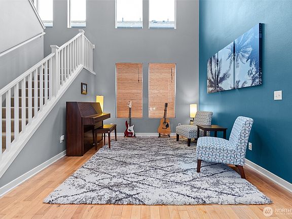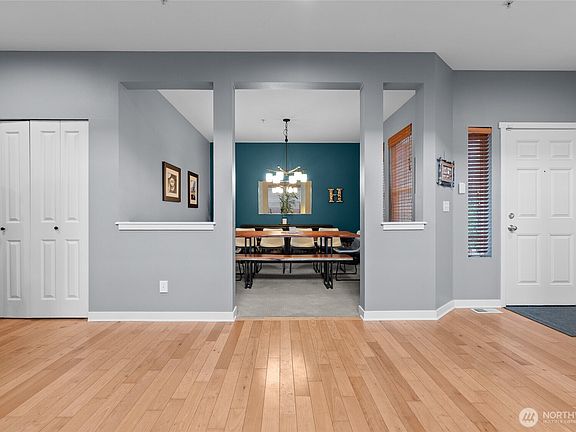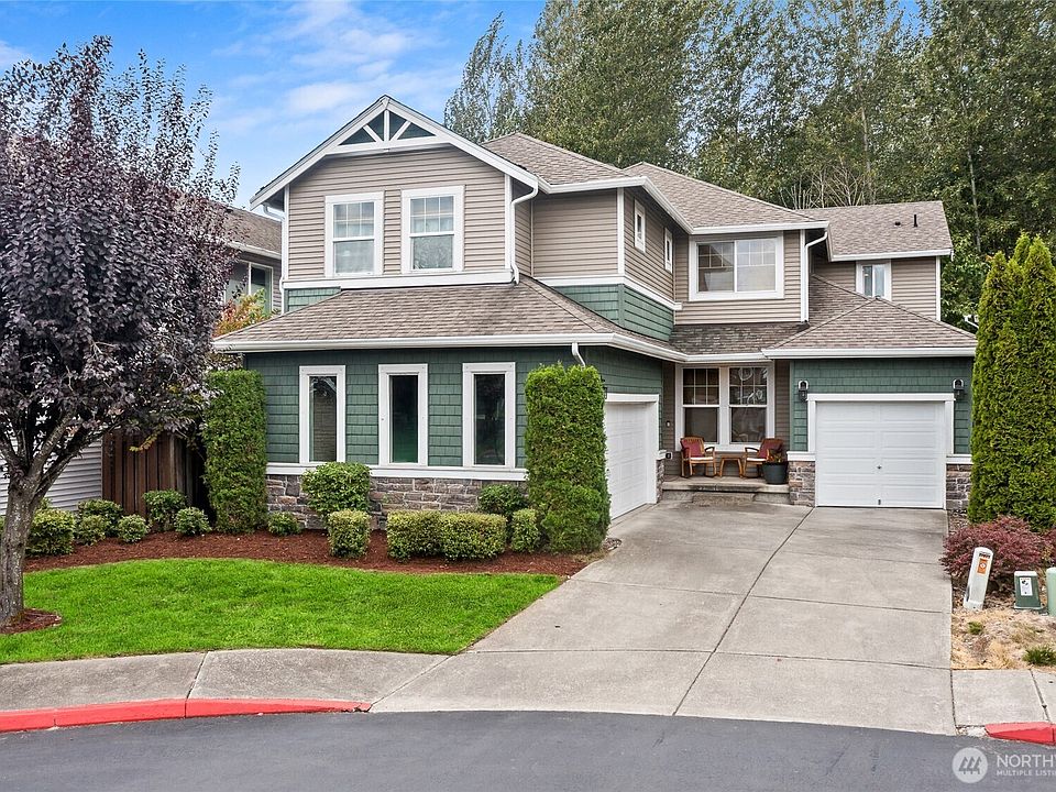 Hot on the market, this desirable home has so much to offer. Soaring ceilings as you enter, real hardwood, formal dining, living room, the grand, open kitchen w/ SS appliances flows into the cozy family room w/ gas fireplace, bed 1 & more all on the main level. Upstairs primary suite, 5-piece bath, walk-in-closet & 3 more spacious bedrooms w/ full bath & laundry room. Fresh paint throughout. The fully fenced backyard is your own retreat as you soak in the quiet surroundings of nature & entertain on the patio w/ built in firepit. New A/C Furnace in 2020. Ample parking 2 car & 1 car garage along with driveway parking. Enjoy the community playgrounds, walking & biking paths. Convenient location makes easy access to I-5, Amazon & Airport...