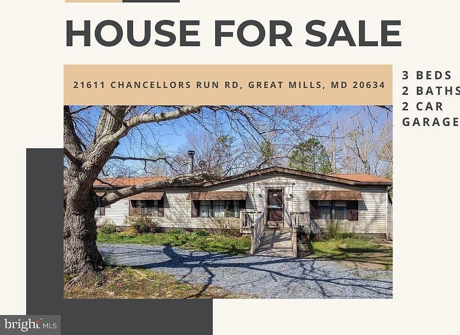 What a Rare & Awesome Opportunity to buy in this quaint community! This property is a blank canvas waiting for your vision. Perfect for Investors, DIY enthusiasts, or anyone looking to bring new life to a home. Don't miss out on the chance to ADD VALUE and MAKE IT YOUR OWN. This 3-bedroom, 2-bath, single-level home is situated on a LOVELY, shady lot that offers Incredible POTENTIAL. There's PLENTY OF SPACE and a LARGE YARD on almost 1 ACRE of land. The house is almost 1800 SQ FT vs 1100 of most similar homes in the area (1/3 LARGER!). In addition, the LOT is almost 1 ACRE where most lots are .30 of an acre! So 3 TIMES AS LARGE. Features HANDICAP ASSESSABLE entrance ramp and EXTRA-LARGE, 2-BAY DETACHED GARAGE that can be used as an office, shop, party room, or many other ENDLESS POSSIBILITIES. With some VISION and IMAGINATION (ie: SUBDIVIDE the LAND into 2 or 3 Lots!) , this property could truly shine! Unleash your CREATIVITY and bring this home back to its original glory. Ask us about rehab values. Minutes from GREAT SHOPPING AND RESTAURANTS. Enjoy outdoor fun at Chancellors Run Regional Park, St. Mary's River State Park, Leonardtown Wharf Park, Newtowne Neck State Park, Elm's Beach Park, Breton Beach, and Great Mills Swimming Pool! Close to Vandermere Farm and Stables, Southern Maryland Laser Tag, Piney Point Lighthouse Museum & Historic Park, Old Jail Museum, and Patuxent Naval Air Museum. Find great civilian and military employment opportunities on the Naval Air Station, Navair, as well as jobs at local hotels such as Spark by Hilton, LaQuinta Inn & Suites, Townplace Suites, and Comfort Inn and Suites. Conveniently located near MD-4. Nearby Hospitals include Naval Health Clinic Patuxent River (3.8m); Hollywood Medical Center (8.8m); Medstar St Mary's Hospital (12m). Want to see the home in person? SCHEDULE a showing TODAY!! Investors: Great ROI! This house offers a phenomenal Investment Property Opportunity for Fix & Flip or Rental Property for Passive Rental Income (BRRR). ** The After Repair Value (ARV) for similar REHABBED SOLD homes in the area in 2025 is up to $370,000 (ie: 45506 Grant Pl - $370,000 on 7/17/25). * Similar REHABBED homes in the area have RENTED for up to $2,450 (ie: 22005 Baja Ln - $2,450 on 6/9/25).