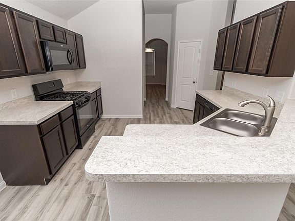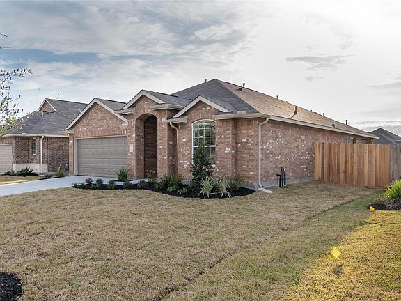 The Thompson II Plan is a well-designed one-story home featuring 3 bedrooms and 2 bathrooms. A formal dining room greets you at the entry, while the open-concept kitchen flows into the family and breakfast areas ideal for everyday living or entertaining. The spacious primary suite includes a walk-in closet and a private bathroom with dual sinks and a separate tub and shower. Two secondary bedrooms are located on the opposite side of the home, along with a full bath and linen storage. A cozy fireplace and covered patio add comfort and style. Features include wood-grain vinyl plank flooring, a two-car attached garage, fenced backyard, and sprinkler system. All homes are SimplyMaintained for a $100 monthly fee that includes front and back yard lawn care and exterior pest control.