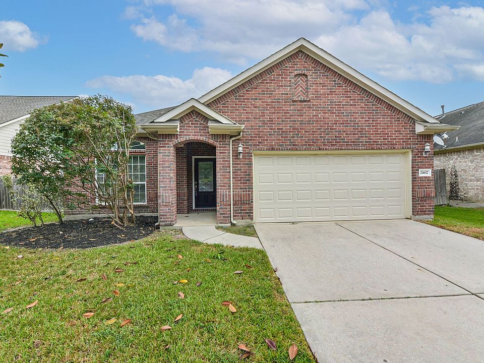 This cozy 2032 SF home boasts an updated neutral palette with vinyl wood-look flooring and tile, lots of natural light, recessed lighting, a formal Dining Room that can be used as a Home Office, spacious Island Kitchen with black appliance package including a REFRIGERATOR, a Breakfast Area and lots of storage with 42'' cabinets!! Family Room is partially open to Kitchen and has a gas burning Fireplace!! Primary Bedroom includes a Primary Bath with separate shower, garden tub and HUGE walk-in closet! With three additional Secondary Bedrooms and a Secondary Bath, this home does not disappoint! Other features include 2" faux wood blinds, upgraded lighting package, a covered back porch, fenced in backyard, lawn sprinkler system and automatic garage door opener! Minutes from Hwy. 59 AND 99/Grand Parkway! Home is available for IMMEDIATE MOVE-IN