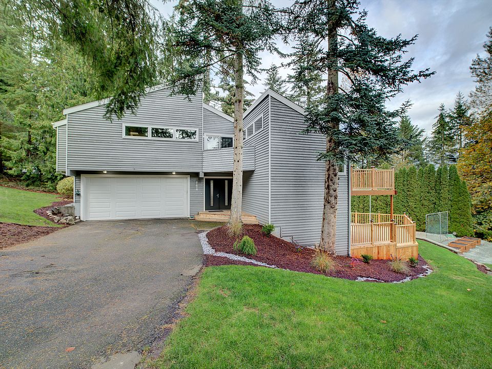 Stylish 5 bedroom home features 16 high ceilings in the Living Room and Dining Room. The spacious kitchen has an amazing eat-in area with a slider to the deck. The master retreat offers a beautiful bath, private deck and an office space. The downstairs family room makes a great gaming or movie area. Outside you will find a sport court, patio w/hot tub, 2 10 x 46 decks, and a vegetable garden. A 2 car garage and award winning Northshore schools complete the package. Great for entertaining!
