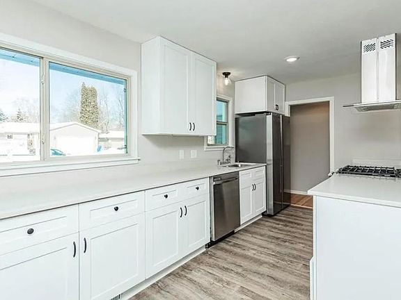 3 bed 2 bath home in Mendota Heights. The house has been completely renovated including new kitchen cabinets, quartz counters, stainless steel appliances. Hardwood floors throughout the entire main level and the property backs up to a nature preserve. The main bath has a large vanity, tub and tile surround. The primary bathrooms is completely redone with a subway tile shower. 2 car attached garage and unfinished basement for storage