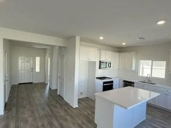 The gourmet island kitchen comes equipped with stainless steel appliances, including a gas cooktop, oven, microwave, and dishwasher. Enjoy Blanco Tiza Quartz countertops, a breakfast bar, pantry closet, and crisp white shaker cabinetry throughout the home.