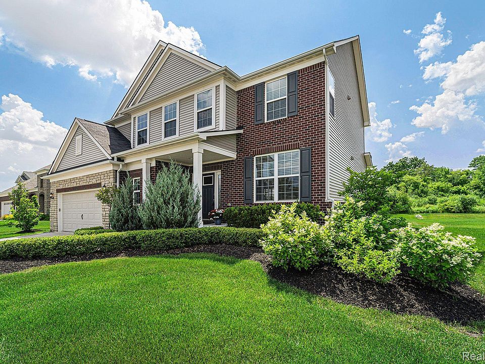 Outstanding, BETTER-than-new colonial backs to Bald Mountain State Park for privacy and peace! One of the builder's most popular floor plans, this open-concept stunner offers upgraded kitchen with huge granite island, double ovens, gas cooktop and impressive exhaust fan, plus huge walk-in pantry, "planning center", sunroom, vaulted ceiling great room with gas fireplace, 1st floor office and laundry/mud room. Luxurious primary suite with enviable bathroom and spacious walk-in closet, PLUS 3 large bedrooms and loft area PLUS huge media room upstairs. Gorgeous stamped concrete patio with fire pit and 2 1/2 car garage. Basement is plumbed for full bath. Be in before school starts!