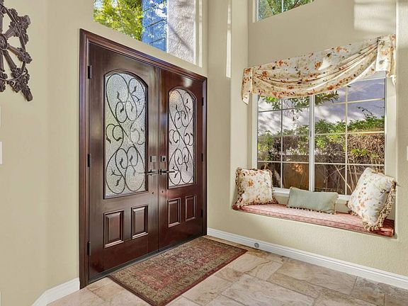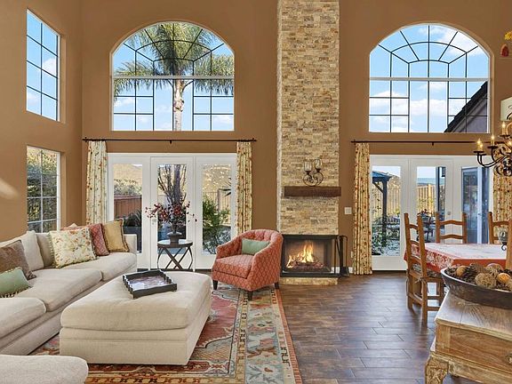Experience amazing mountain views atop the gated community known as Emerald Heights. This incredible 3 bed with an optional 4th bed downstairs and 3 full baths, will captivate you with its many upgrades & luxurious features. Begin your journey by stepping through the stunning wood, glass, & iron double front doors. Once inside, you are immediately greeted by beautiful travertine floors & vast ceilings that create a grand & open ambiance. Large windows flood the home w/natural light, establishing a bright & airy environment. The home exudes warmth & coziness, highlighted by an upgraded stone fireplace in the living room, a beautiful iron chandelier creating elegance in the dining room, & a distinctive rounded iron staircase. The kitchen is a culinary dream, equipped w/ high-end appliances that cater to chefs of all levels. It serves as an ideal space for cooking & entertaining family & friends. The downstairs den, w/ its double doors, can be transformed into an office, exercise room, or even a 4th bedroom. The spacious garage also features upgraded epoxy floors, adding to the home's many conveniences. Upstairs, you will notice 3 bedrooms & 2 full baths. The primary suite serves as a personal sanctuary, featuring an upgraded stone fireplace & breathtaking mountain views. The primary bath offers a space for relaxation w/a soaking tub, separate shower, & ample space for two people to prepare for the day. The expansive closet area, complete w/ plenty of built-ins, caters to those with significant storage needs. Whether you enjoy entertaining, BBQing, or simply relaxing outside w/a good book, you will appreciate the breathtaking mountain views from your private backyard. This high-end luxury home within the Emerald Heights community offers an array of amenities including a clubhouse w/ an Olympic-size pool, gym, hot tub, lighted tennis, pickleball, & basketball courts. Rest assured you are in San Marcos schools, located near freeways, shopping, & medical. This beautiful oasis is not to be missed, offering a perfect blend of luxury living and community charm.