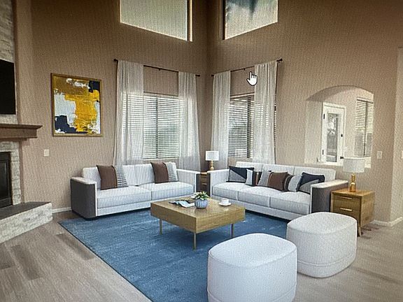 This stunning two-story home is a perfect blend of modern updates and comfortable living, featuring a golf course lot and a gorgeous backyard with sparkling pool. Inside, the open floor plan showcases high ceilings, abundant natural light and stylish finishes throughout. The expansive living area, complete with a stone-accented fireplace, flows seamlessly into the dining & kitchen spaces. The kitchen features granite counters, an island with seating, a pantry & gas stove with/ adjacent formal dining room. The laundry room, full bathroom & bedroom complete the main level. Upstairs, the primary suite is a true retreat with a vaulted ceiling, walk-in closet, and an en-suite bathroom w/ dual vanities, a soaking tub and separate shower. 3 additional bedrooms & loft offer generous space and versatility. The backyard is a private oasis with a covered patio extended with pavers and a pool perfect for relaxing or entertaining while watching the golfers and gorgeous sunsets. The three-car garage features extensive built-in storage and a workbench. With quickest access to Hwy 347 & one of Maricopa's lowest HOAs, Rancho El Dorado has a palm tree lined entrance with lake, golf course throughout, playgrounds, Silver Spur Restaurant & pro shop and two elementary schools.