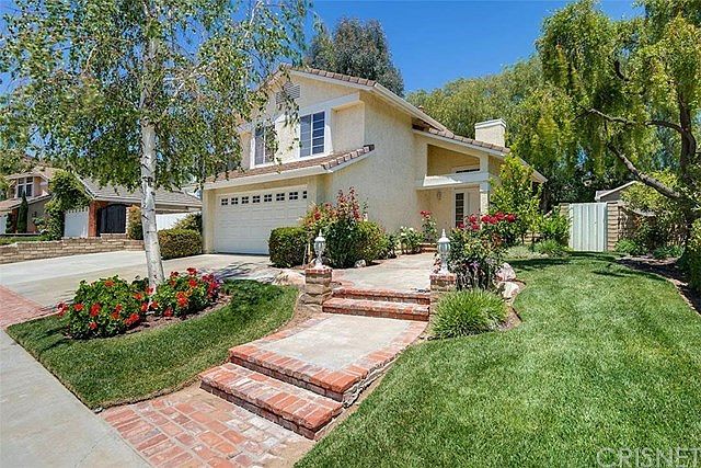 Picturesque Traditional home on a private cul-de-sac in a prime Bouquet Canyon location. Exquisite curb appeal with lush front lawn and beautiful landscaping. Large approx 7,705 sq.ft. lot with front motor court, 2 car garage, Gated RV and/or boat parking. Wonderful living room with vaulted ceilings, new fireplace with Ann Sacks stone, surround sound, beautiful white oak hardwood flooring throughout the first floor. Kitchen with all new stainless steel appliances, granite counter tops, large adjoining dining area with sliding doors opening to the expansive pool size backyard. Private master suite featuring dressing room or computer niche area, abundant closet space including walk-in closet. Two family bedroom suites also upstairs with shared bath upgraded with Carrera marble floor and counter top. Tranquil and private pool-sized backyard with patio, storage shed and expansive lawn. Fabulous community walking distance to shopping and private gated park. Low HOA and NO MELLO ROOS!!