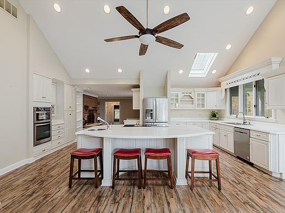 Central fireplaceDetached garageSprawling deckCape cod styled homeWet barFront porchSpa-inspired bathroom