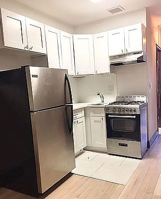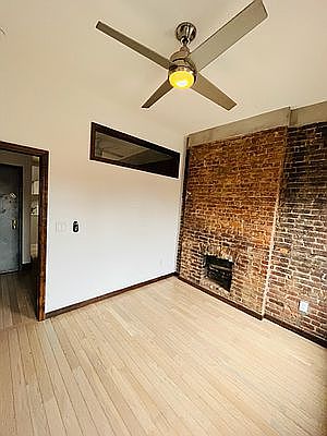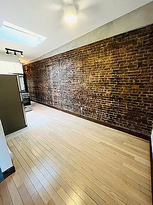 Two bedroom apartment on the 3rd floor with hardwood floors. Living room with exposed brick wall. Separate modern kitchen and full bathroom with vanity.