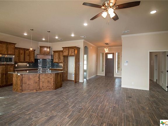 Situated in the exclusive community of High Crest in the BISD, this 4 bedroom, 2 bath floor plan by Bruton Homes is spacious and inviting with its neutral color palate, high ceilings, and craftsman style details. The open plan encompassing the kitchen, dining, and living is anchored with "wood" tile plank flooring bringing the kitchen with its deep gray subway tile backsplash, granite countertops, and richly stained alderwood cabinets together beautifully. The split bedroom plan allows for both flexibility and privacy with beautiful stained cabinetry in both the guest and master bath. The jewel of the home is the barn door located in the master leading to the double vanity bath with separate garden tub and enclosed shower. The master closet has a second door opening up into the spacious laundry room allowing for ease of use. With a view for miles off the back covered porch, we are excited to bring you this latest offering from Bruton Homes.