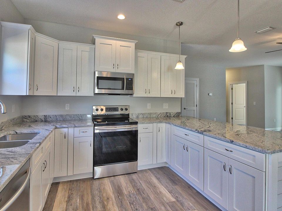 Excellent Builder is offering this brand new home for sale on a great lot in a great location convenient to everything. Home boasts 3 bedrooms/2 bathrooms; Plank tile flooring in the kitchen, Living room, laundry room and bathrooms; carpet in the bedrooms; Quartz Countertops in Kitchen and Bathrooms; tray ceiling in Master Bedroom; large dining area; split bedroom plan; custom pantry; beautiful wood cabinets; Low E vinyl windows; Stainless Steel Appliances (stove, dishwasher, microwave, garbage disposal); ceiling fans; concrete board exterior siding (= lower homeowners insurance premiums); architectural shingles; neutral modern color scheme. The exterior features a covered front and back porch, and sprinkler system. Photos are of 2153 Wind Trace.