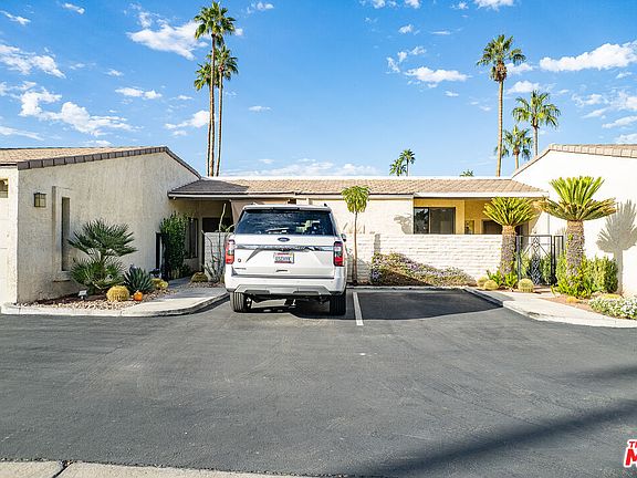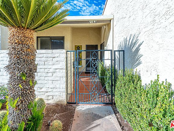 Desirable South Palm Springs Living on FEE Land!Location, opportunity, and convenience await in this generous two-bedroom, two-bath home located in the sought-after Canyon South 2 community. The spacious living room opens to a private patio through large sliders, creating an inviting indoor-outdoor flow just steps from one of four sparkling community pools. The primary suite features an en-suite bath and patio access, expanding your living space and offering a peaceful retreat. The second bedroom, also generously sized, includes an adjoining bath and access to a separate patio, perfect for guests or a home office.This comfortable home offers excellent potential and awaits your personal vision. An attached garage provides convenience, while the HOA covers spas, water, trash, and cable. Enjoy the best of the Palm Springs lifestyle, close to shopping, dining, golf, hiking, and all the outdoor activities this vibrant community has to offer.