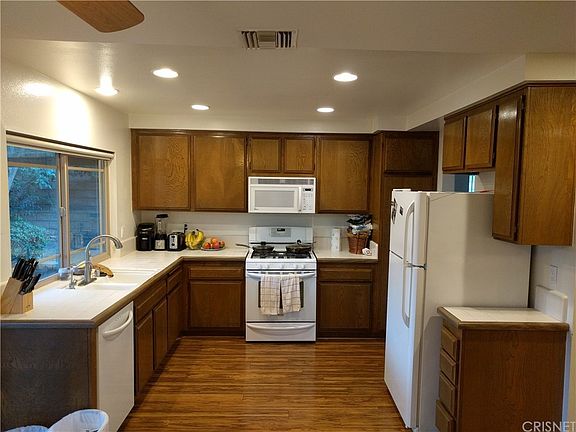 4 bedroom 2 bath home in Santa Clarita (Saugus) near Bouquet Canyon and Haskell Canyon. Recessed lighting in the dining and kitchen areas with over sized floor planks. Carpet in living room and bedrooms too. Bathrooms have been upgraded with modern materials. Ceiling fans can be found in most rooms. The home is in an HOA and features park, pool and tennis court.