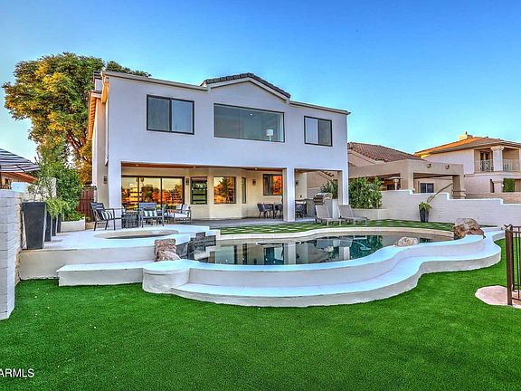 AS OF12/6, SELLER UNDER CONTRACT ON NEW HOME! PANORAMIC GOLF COURSE, WATER AND MOUNTAIN VIEWS! Arguably, the best remodeled golf course home and lot in the entire State of Arizona! Three well known interior design companies have played a role in this exterior and interior transformation. This home will be known as ''The Crown Jewel'' of Arrowhead Ranch! Once entering this modern transformation, one has a clear view of the home's interior, the limestone/ black mosaic pool/spa, the lake, the golf course and the mountains! The kitchen and family room have taken design to a whole new level. The new glass stairway steps are illuminated with LED lighting. The primary bedroom and second bedroom both have large sitting areas with the most amazing views. bedrooms feel like five-star hotel rooms! Each bathroom has been designed with it's own individuality. The backyard incorporates a new granite BBQ with fridge and ice storage. This subdivision is one of the few in Arrowhead Ranch that consists of all custom homes! The home also has a 3.5 tandem car garage. The garage has ample space for a golf cart, motorcycle or ATV! In my 30 years of licensed real estate experience, I have never experienced a total package like this home for this price point!
