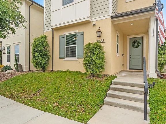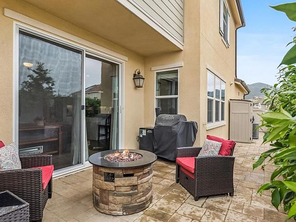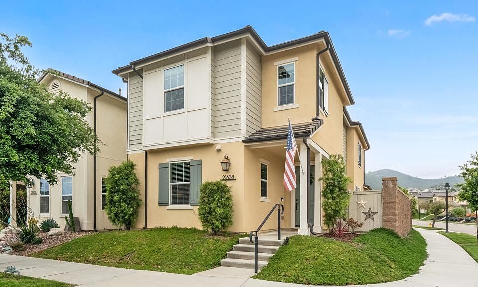 Offering an expansive 2,018 square feet of living space 21638 Saddle Bred Ln is designed for both comfort and style. The home features four spacious bedrooms and three well-appointed bathrooms, providing ample space for family living and entertaining guests. The kitchen comes complete with a gas stove, elegant granite kitchen counters, and a central island perfect for meal prep or casual dining. Stainless steel appliances add a sleek touch to this culinary haven, while an adjoining dining area makes entertaining a breeze.The primary bedroom suite is a private retreat, featuring a luxurious ensuite bathroom with separate shower and tub, along with a windowed bathroom for natural light. A walk-in closet offers generous storage. Step outside to enjoy the private patio and fenced yard, perfect for relaxing or entertaining in the uncovered courtyard. Year-round comfort is assured with central air conditioning offset by paid solar, and a convenient washer/dryer hookup adds practicality to daily living. This home is an exceptional opportunity for those seeking elegance and functionality in a vibrant community setting. Harmony Grove residents enjoy access to many amenities including multiple parks and playgrounds, a beautiful gated community pool area with an outdoor seating area, outdoor kitchen and fire pit. Don’t miss your chance to make this beautiful property and exclusive community your own!