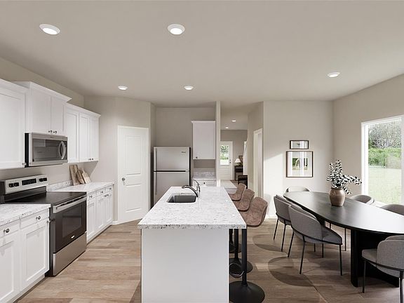 This thoughtfully designed three-bedroom Olive plan at Magnolia Woods offers comfort, style and plenty of space for the whole family. Each bedroom features its own walk-in closet, providing ample storage. At the heart of the home is a spacious entertainment area, where a large kitchen island overlooks the open family and dining rooms. With its seamless layout and smart design, this home brings ease and elegance to modern living.