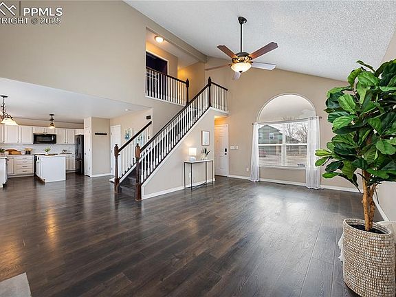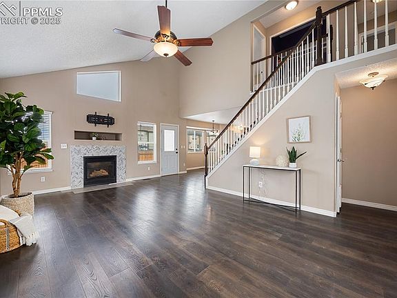 3 BEDROOM 2 BATH, 2 CAR GARAGE, WITH A BASEMENT. BACKS TO OPEN SPACE. Home features an open, modern floor plan, a thoughtfully designed kitchen with ample cabinet and counter space, a convenient upstairs laundry, and spacious green lawns in both the front and back. Unwind on your large back patio and take in the mountain views—all without sacrificing privacy, thanks to the wide greenbelt maintained by the HOA. Prime location! You'll be just minutes from Ft. Carson, Mesa Ridge and Cross Creek’s shopping and dining, with easy access to I-25, and only 15 minutes to downtown Colorado Springs. Plus, three schools are within a mile! Additional perks include a southern-facing driveway for minimal snow shoveling and an unfinished basement—already plumbed for an extra bathroom—offering a blank canvas for added value and personalization. Don't miss your chance—schedule a showing today!