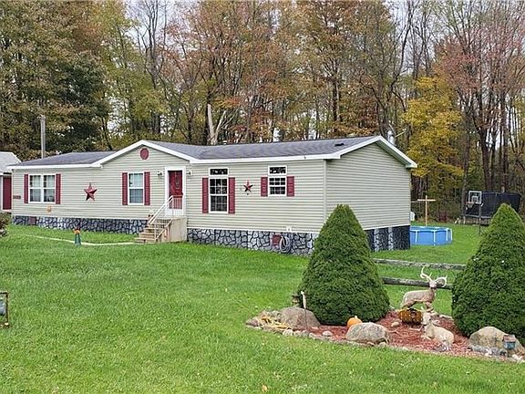 This country style doublewide home with everything close by and situated on a triple lot! Minutes from I 79 for an easy commute! It has a cozy gas fireplace and central air to boot! The floorplan is open and has beautiful vaulted ceilings. Also a fenced in yard for pets! Appliances are not included. Tan shed is getting removed.