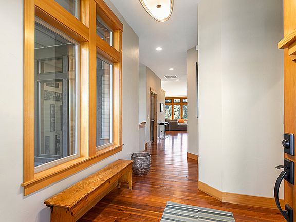 You will love this contemporary beauty in Bend's premier westside neighborhood of Northwest Crossing. The unobstructed southern exposure is captured through large wood wrapped windows and sky lights. 10 foot ceilings and hardwood floors provide a feeling of space and tranquility. LED lighting, central vac system, and Platinum Earth Advantage Certified for energy efficiency. Chefs kitchen with 6 burner gas range with hood, built in pantry, and separate island with sink. Office (with a closet), laundry room, and master suite upstairs. 3 bedrooms (1 en suite) with another full bathroom downstairs. Also downstairs is a large family room and mini kitchen. Multiple decks for eating and gathering. Immaculate 3 car (tandem) garage with epoxy floors and shop area. Large .43 acre lot that backs up to Parks and Rec trail system with easy access to Phils Trail, Downtown, and schools. Large extra storage space and workout/bike room not included in the square footage. This home can't be missed!