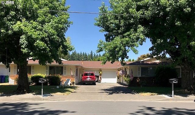 Pristine, well cared for duplex. Each side has 2 bedrooms & 1 bathroom. Central air, garage & off-street driveway parking, washer dryer hookup, new storage shed. Great location. Beautiful private fenced yard, covered patios, big beautiful trees & well manicured lawn.