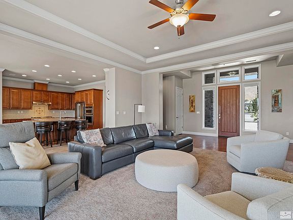 Custom, single-level residence nestled on a .57 acre lot providing sweeping views of Somersett Golf Course's 12th hole and the breathtaking Sierra Mountains. As you step inside, the open layout immediately captures your attention, leading your eyes to the vast views that stretch out forever. The property boasts three bedrooms, a study and five-car garage a feature not commonly found in Somersett! A private shaded courtyard with a water feature further enhances the distinctive charm. Vast walking trails., The sellers are the second owners of this home and pride of ownership shines throughout. No children or pets have lived in this home. Sellers had the oversized 2 car garage with a large attic space built a few years ago. The attic space above the 2 car garage is large enough that it has stairs for easy accessibility. Could even be turned into a loft or a painters den. Somersett, it's good to be home!