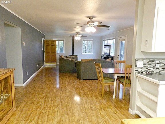 Very nicely remodeled 3 BR, 2 BA home on .79 acres, that includes newer roof & gas forced air furnace. Updated kitchen is light & bright with stainless steel appliances, tile counters & backsplash, & refinished cabinets. Enjoy the cozy newer gas stove & picturesque windows in the living room that opens to a large partially covered deck. Spacious master bedroom has walk in closet. Property is completely fenced with a single car garage, 1