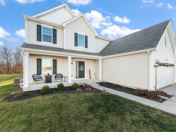 SATURDAY DECEMBER 6TH 12-3PM! Come take a look at this stately two-story 3-bedroom home with a grand two-story foyer and a beautiful oak staircase featuring elegant iron balusters. This almost new construction home also offers a versatile loft space that can serve as a home office, library, or play area. An open floor plan offers spacious living, a formal sitting room, and a dining room that flow seamlessly into the open-concept kitchen. The heart of the home showcases a bright great room and a chef-ready kitchen with stainless steel appliances, quartz countertops, luxury vinyl plank flooring, and a large island with seating. The office includes French doors for privacy and focus. Designed for entertaining, the open floor plan creates effortless transitions between living spaces. All of this and an unfinished basement for future expansion. Step outside to a private backyard perfect for outdoor gatherings or quiet relaxation. Close to shopping, eateries & I65 for easy commuting!