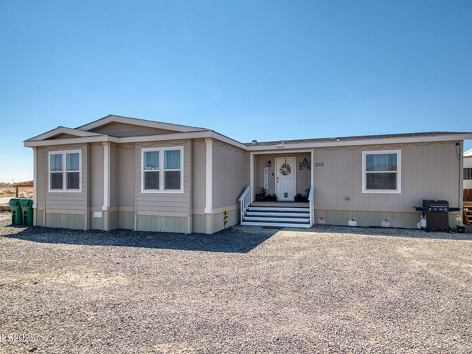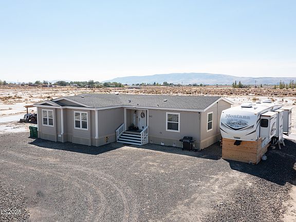 Better than new, this stunning home offers nearly 2,000 square feet of comfortable living space with 3 bedrooms, 2 bathrooms, and a versatile bonus den or office. Set on almost 5 acres, the property provides the perfect blend of privacy, space, and modern convenience. The kitchen is beautifully appointed with rich cherry cabinets, granite countertops, and stainless steel appliances, creating a warm and functional heart of the home. Outside, you'll find an 8x16 chicken coop, a 40-foot high cube container with a 12x18 foot lean-to, and an RV hookup with dedicated 30/50 amp service and sewer connection. Starlink satellite to stay with the home. Expansive desert and mountain views surround you, while the nearby Lahontan Reservoir offers endless outdoor adventures. A rare opportunity to enjoy country living with modern amenities.