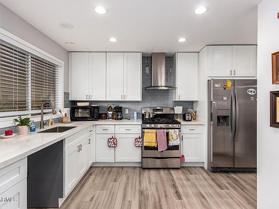 Beautifully updated 2 bed / 2 bath condo! You're welcomed by a serene living room with vaulted ceilings, a soothing palette, clerestory windows for natural light, wood-plank tile flooring, and a cozy fireplace. The eat-in kitchen features quartz counters, 42'' white shaker cabinets, recessed lighting, a stylish tile backsplash, and sleek SS appliances for a delightful cooking experience. The primary bedroom includes plush carpeting, sliding door access to the patio, an ensuite with double sinks, beautiful tile shower, and a walk-in closet. From covered patios, enjoy tranquil views of the lush community greenbelt, a perfect backdrop for outdoor relaxation. Convenient location close to bus stops, restaurants, and shopping. Make it yours today.