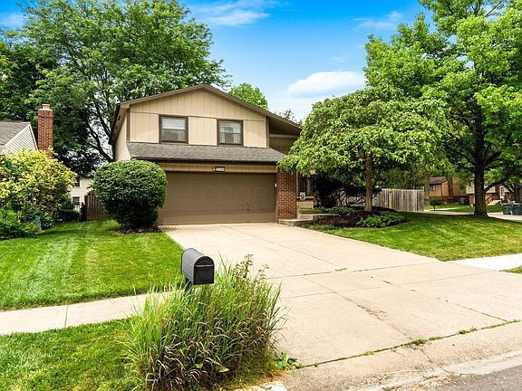 Beautiful 4 level split located in Worthington Schools with Columbus taxes! Welcome to your new home! This beautiful updated 4 level home blends contemporary style with recent curated renovations, making it move-in ready and perfect for todays modern living. Interior highlights include Newer luxury vinyl plank flooring throughout the main level /owner ensuite/dining kitchen area : durable, stylish, and easy to maintain. Walk into the welcoming vaulted entry that leads to the spacious Great room with Wide plank LVP flooring, White woodwork, Cathedral ceilings, Wood burning fireplace with brick surround/wood mantle. Steps away is the Updated Galley kitchen with Eating bar space for 4, Fresh white tiled backsplash ,quartz counters, newer SS appliances, new cabinet hardware, XL dining space. Great lighting from large floor to ceiling windows and access to the XL concrete patio area with hot tub! Continue to the half bath, roomy laundry/mud room with cabinets/storage & garage access. Owner suite has LVP flooring, walk in closet! and Ensuite bathroom with a large double sink vanity and private tub shower/toilet area ! 2 more BR with nice space ,plush carpet. Recently updated Hall full bath with white vanity and tub/shower. Lower level is finished and perfect for a den or rec area! You will fall in love with the spectacular private fenced XL back yard with large patio: fire pit space and hot tub ! Convenient Shed adds extra storage space. Welcome HOME!